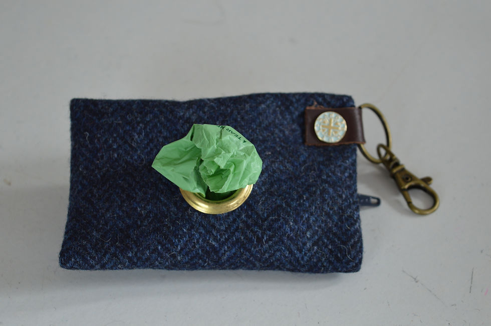 Navy Herringbone British Tweed poo bag holder